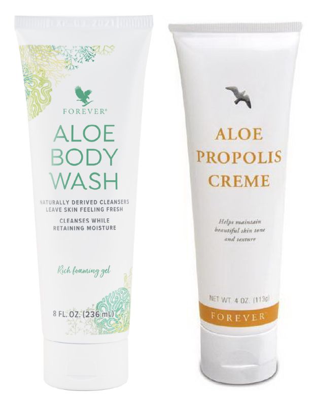 1) ALOE BODY LOTION - Hidratante para pele pós-banho de uso diário. Promove uma sensação de pele macia, saudável e com aparência jovem. Fortalece a hidratação natural da pele. É absorvido totalmente pela pele deixando-a sedosa e não oleosa. Embalagem 236 ml.